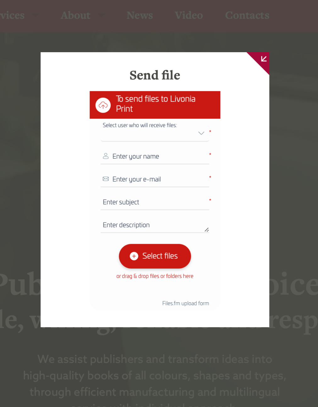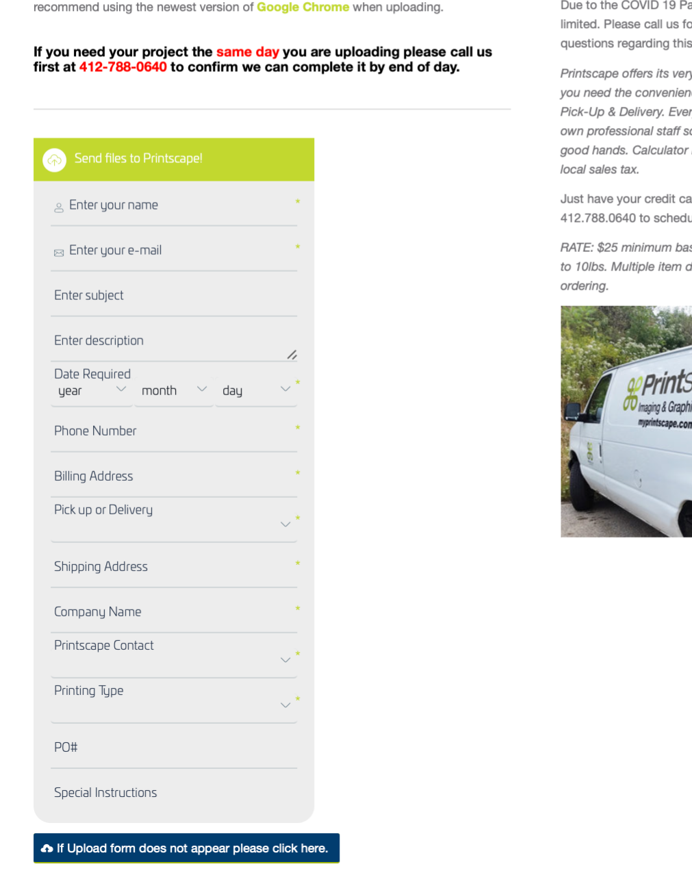 Invite customers to send their files by using the upload form on your website.